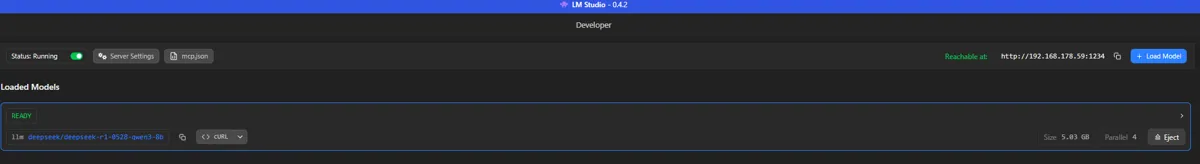 In the image above, you can see I have a DeepSeek R1 model; it supports reasoning but not the aforementioned image recognition. This lack could be fixed by using a specialized model that does only image recognition, but I decided reasoning is more important for now.
